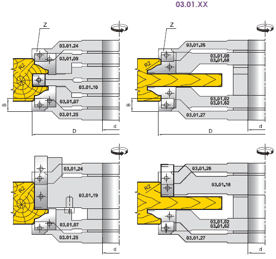 4. Комплект фрез для профілювання стояків та перемичок фільончастих дверних полотен (03.01.XX) Комплект фрез для профілювання стояків та перемичок фільончастих дверних полотен (03.01.XX)