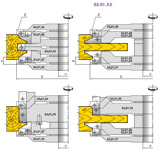 3. Комплект фрез для профілювання стояків та перемичок фільончастих дверних полотен (03.01.XX) Комплект фрез для профілювання стояків та перемичок фільончастих дверних полотен (03.01.XX)