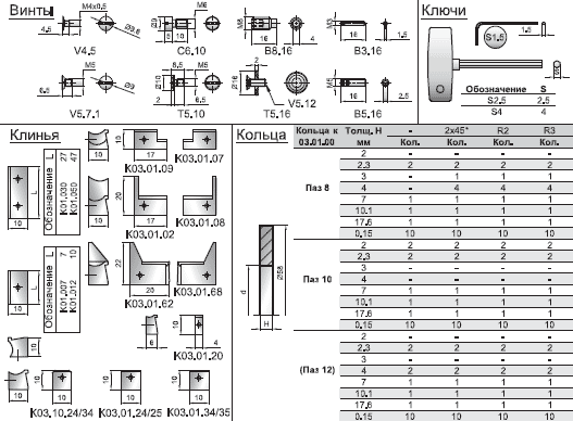 Ножи Кол. Клинья Кол. Крепеж Кол. Базировочные