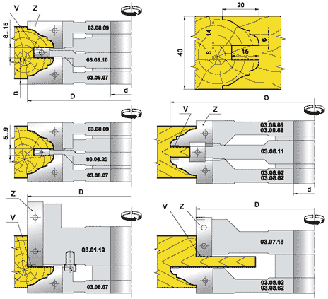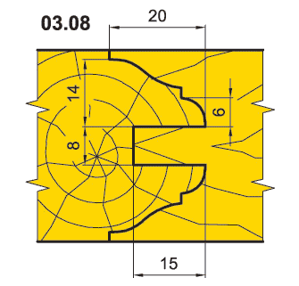 3. Комплект фрез для профілювання стояків та перемичок фільончастих дверних полотен (03.08.XX) Комплект фрез для профілювання стояків та перемичок фільончастих дверних полотен (03.08.XX)