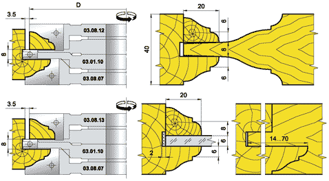 4. Комплект фрез для профілювання стояків та перемичок фільончастих дверних полотен (03.08.XX) Комплект фрез для профілювання стояків та перемичок фільончастих дверних полотен (03.08.XX)