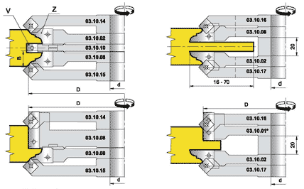 4. Комплект фрез для профілювання стояків та перемичок фільончастих дверних полотен (03.10.XX) Комплект фрез для профілювання стояків та перемичок фільончастих дверних полотен (03.10.XX)