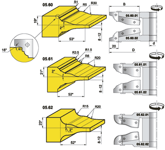 2. Фрези для профілювання фільонок з фігурним фігарейним полем (05.60.ХХ-05.62.ХХ)