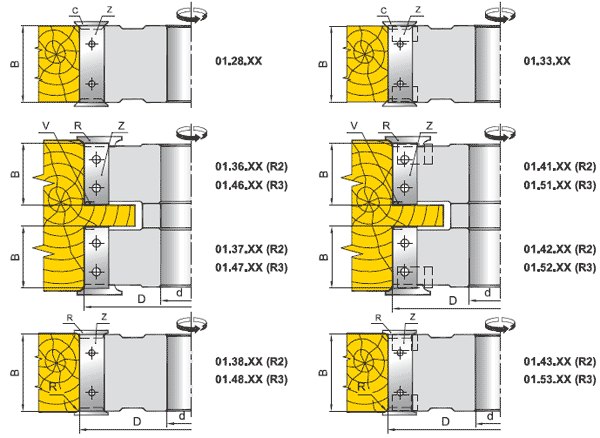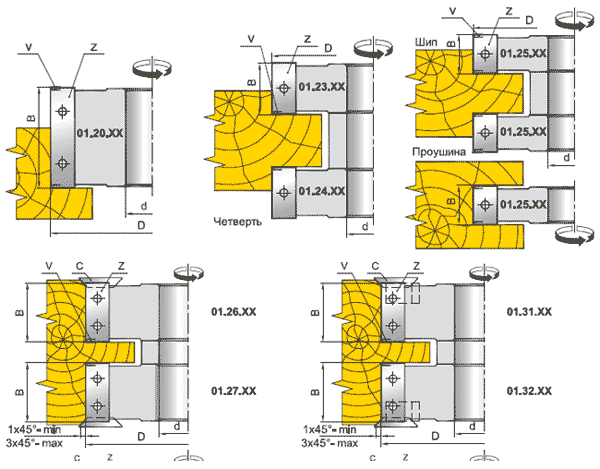 Фрези для вибірки та обробки чверті, пазів та кромок (01.2X.XX...01.5X.XX 01.XXX.XX)