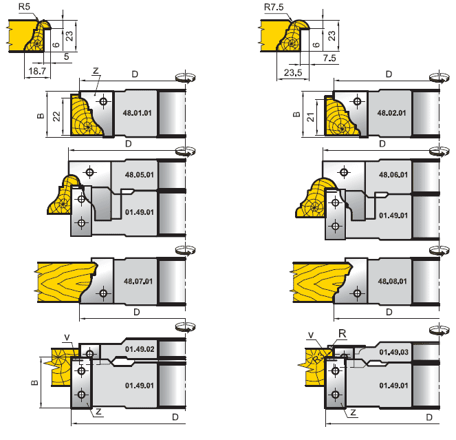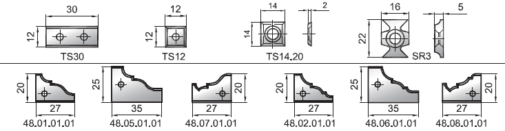 1. Комплект фрез для профільування обкладки (01.49.XX, 48.XX.XX)