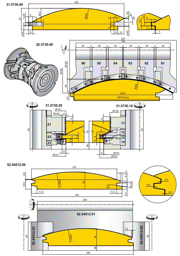 1. Комплект фрез та ножів зі швидкорізальної сталі (HSS) для профілювання облицювальної дошки типу Блокхаус (22.4226.00, 22.4227.00, 31.5730.00, 22.5730.00, 52.54512.00)
