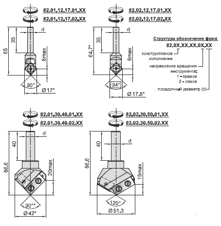 1. Фрези кінцеві для профільної обробки (82.0Х.ХХ.ХХ.0Х.ХХ)