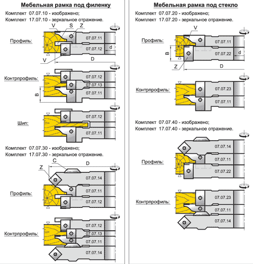 1. Комплект фрез для виготовлення меблевих фасадів (07.07/08.XX, 17.07/08.XX)