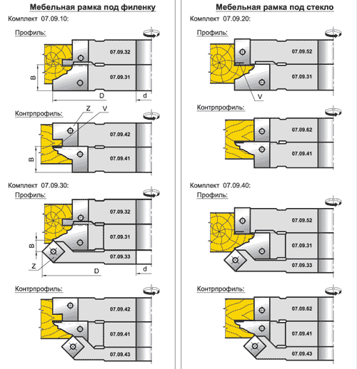 1. Комплект фрез для виготовлення меблевих фасадів (07.09/10.XX) Комплект фрез для виготовлення меблевих фасадів (07.09/10.XX)