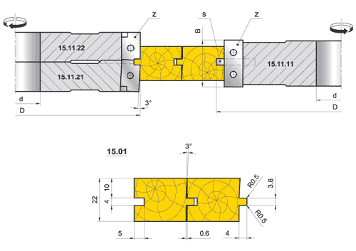 1. Комплект фрез для профілювання паркету (S=4мм) на 4-х сторонньому верстаті (15.11.00) Комплект фрез для профілювання паркету (S=4мм) на 4-х сторонньому верстаті (15.11.00)