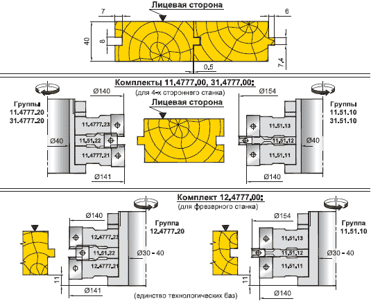 1. Комплект фрез для профілювання дошки підлоги (паз S=8мм) (11.4777.00, 31.4777.00, 12.4777.00)