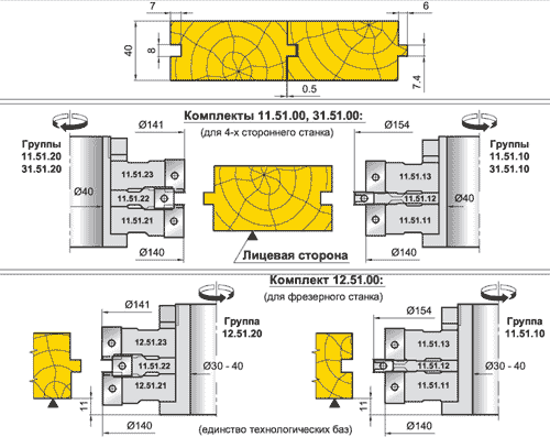1. Комплект фрез для профілювання дошки підлоги (паз S=8мм)(11.51.00, 31.51.00, 12.51.00)