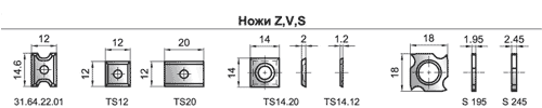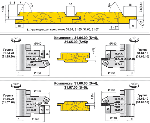 1. Комплект фрез для профільування вагонки (паз S=4-5мм)(31.64.00, 31.65.00, 31.66.00, 31.67.00)