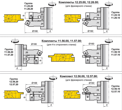 3. Комплект фрез для профілювання фаскової вагонки (11.25.00, 12.25.00, 11.26.00, 12.26.00, 11.56.00, 12.56.00, 11.57.00, 12.57.00)