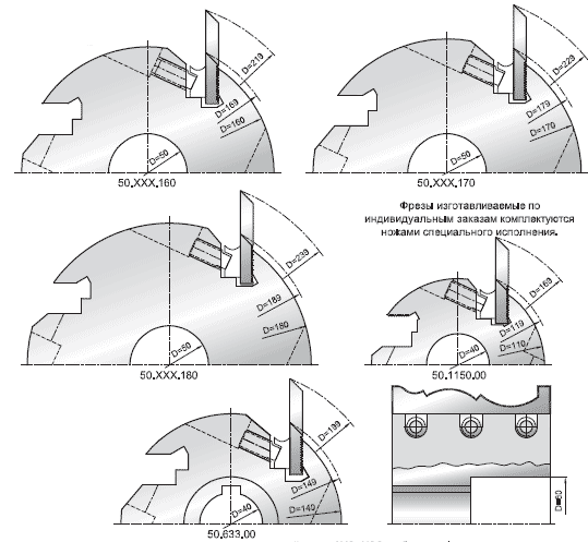 * Корпуса комплектуются ножами из инструментальной стали 9XC, HSS любого профиля, как по отдельному каталогу СП "Иберус-Киев", так и по образцам заказчиков.